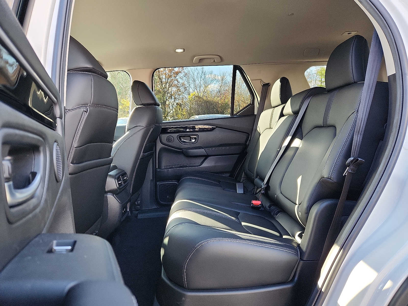 - Cloth and leather rear seat upholstery